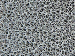 Offenporige Metallschäume sind eine Klasse von funktionalen Werkstoffen und Ausgangspunkt einer Vielzahl innovativer Produkte in der Industrie. Sie werden prinzipiell durch ein Feingussverfahren hergestellt. Ein modifiziertes Verfahren erlaubt die Herstellung von Bauteilen, die hinsichtlich der Legierungsauswahl, der Geometrie, der Dichte und der Zellstruktur bezüglich der Anwendung optimiert werden können. Die Metallschäume vereinen geringes Gewicht mit hoher mechanischer Festigkeit und bieten durchströmenden Medien (z.B. Luft) eine hohe innere Oberfläche bei relativ geringem Strömungswiderstand. Die Dichte von offenporigem Metallschaum liegt bei ca. 10 % des Ausgangsmaterials. Die hohe Stabilität und extreme Leichtigkeit ergibt sich, indem das dreidimensional vernetzte Gefüge wie ein Ganzes reagiert. Die Belastung wird, wie bei den Speichen eines Fahrrades, über eine große Fläche verteilt. Die Bauteile können mechanisch durch Sägen oder Fräsen nachbearbeitet werden.